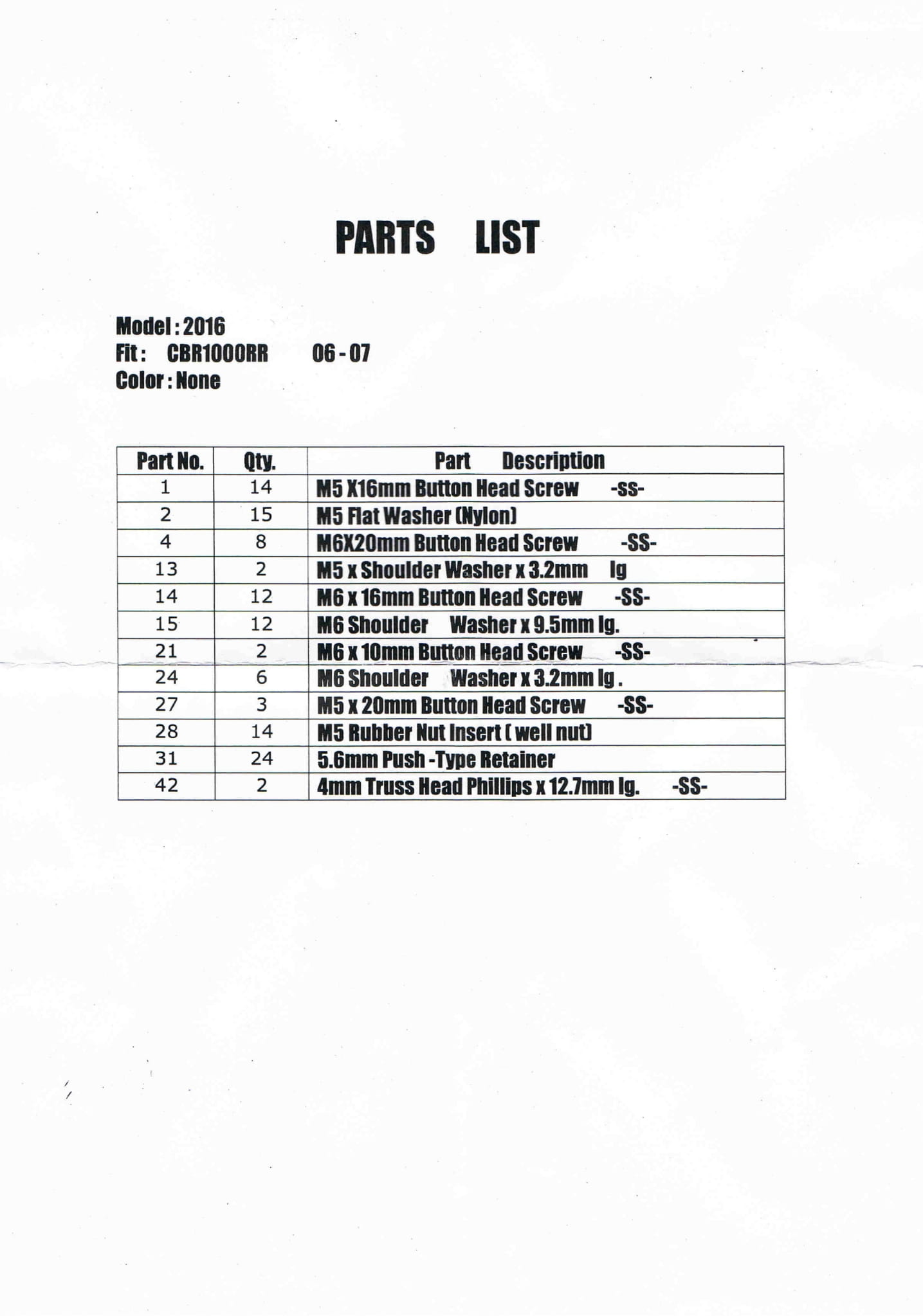 KOMPLET ŚRUB DO OWIEWEK CBR 1000RR 2004-2005 SC57A