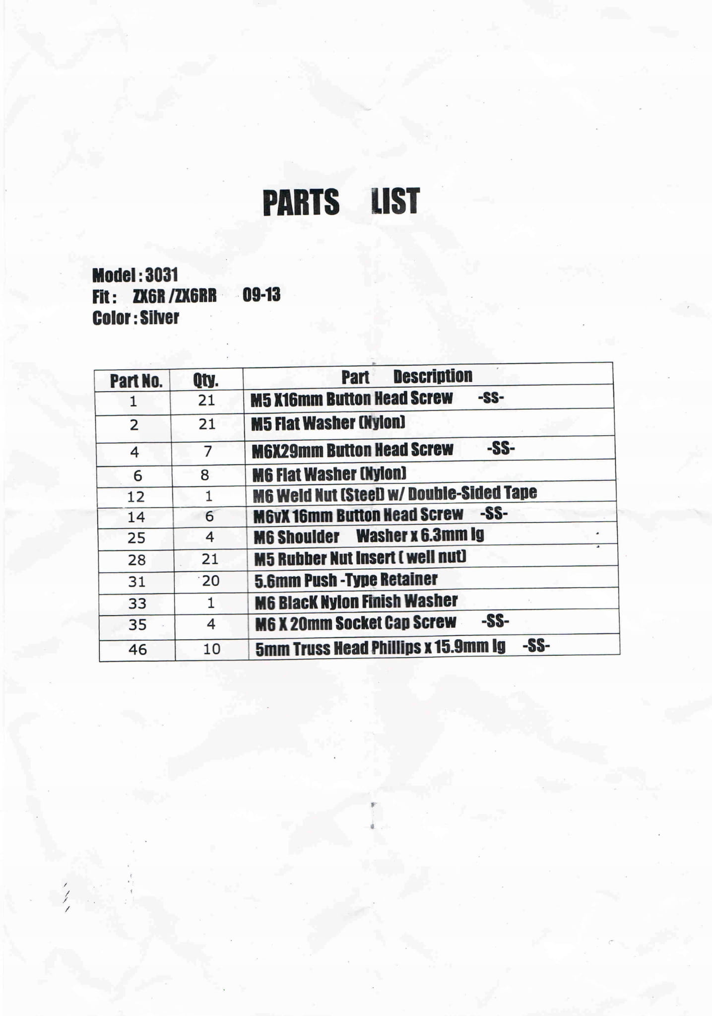 KOMPLET ŚRUB DO OWIEWEK KAWASAKI ZX-6R 2009-2012